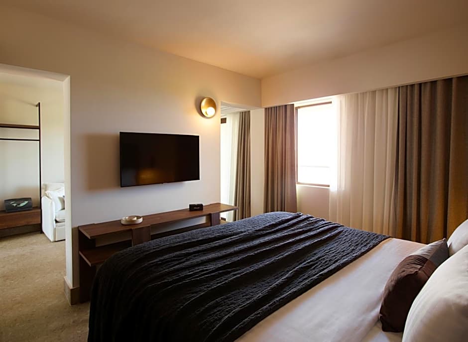This suite has a balcony, flat-screen TV and air conditioning. The room includes bathrobes & slippers, luxurious bath amenities, Bluetooth speakers, Espresso machine, Wi-Fi connection, pillow menu.